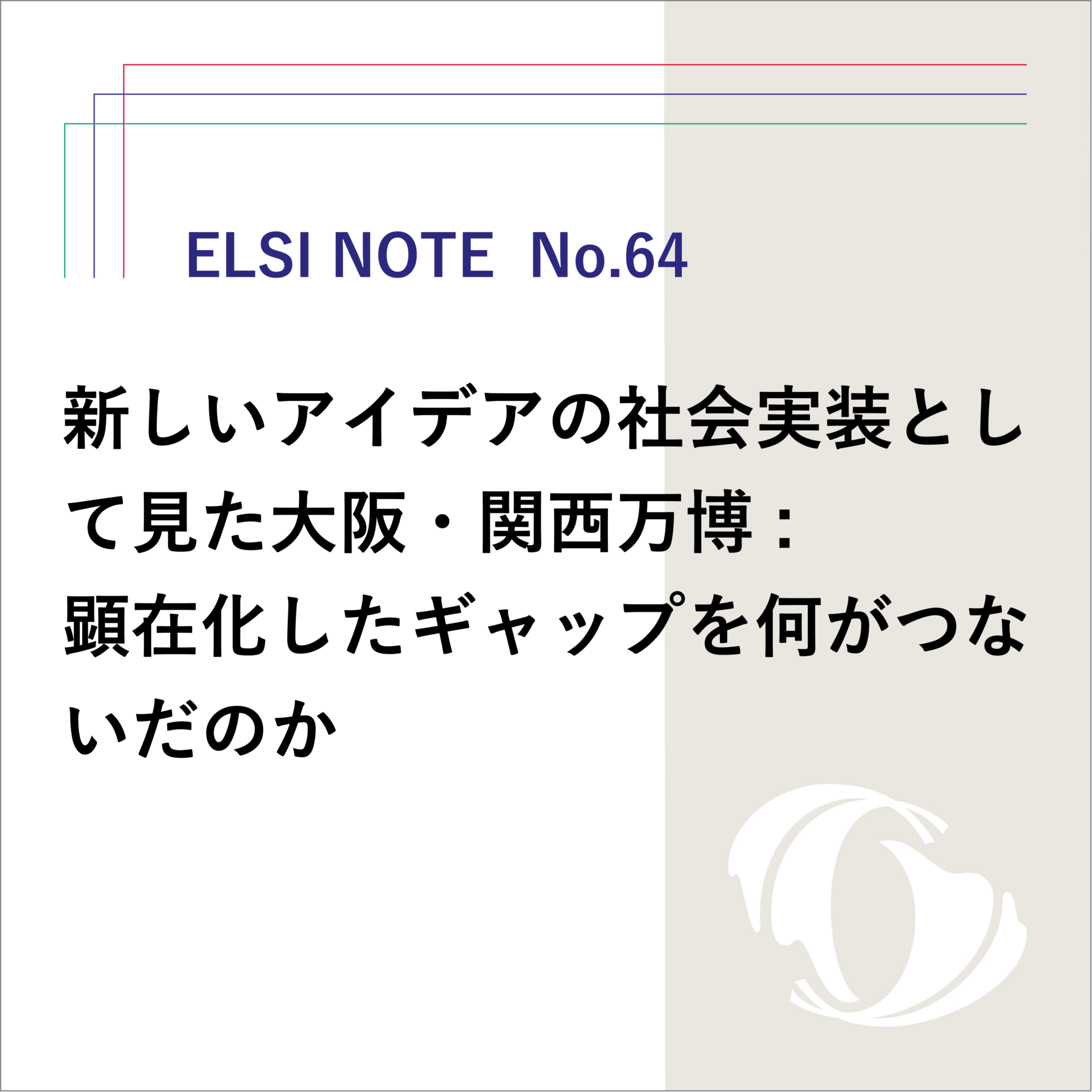 【ELSI NOTE No.64】を公開しました。「新しいアイデアの社会実装として見た大阪・関西万博 : 顕在化したギャップを何がつないだのか」